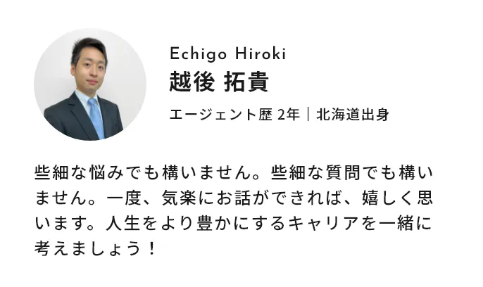 ※他にも複数人在籍しておりますので、他のエージェントが担当する可能性もございます。